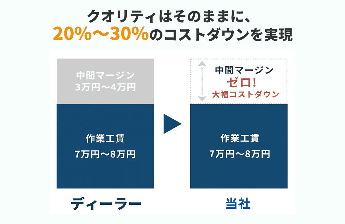 他店と比べてもリーズナブルな価格での施工を実現し、多くのお客様にご満足いただいております。 まずはお気軽にご相談ください。