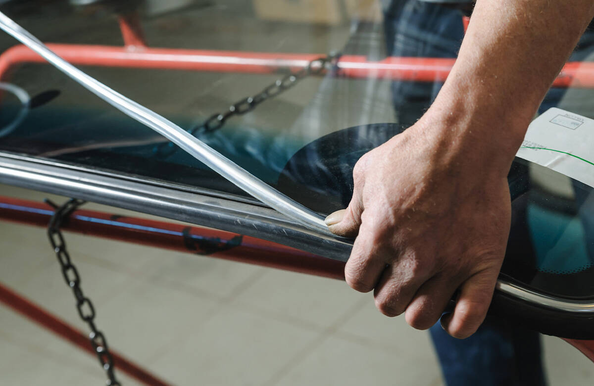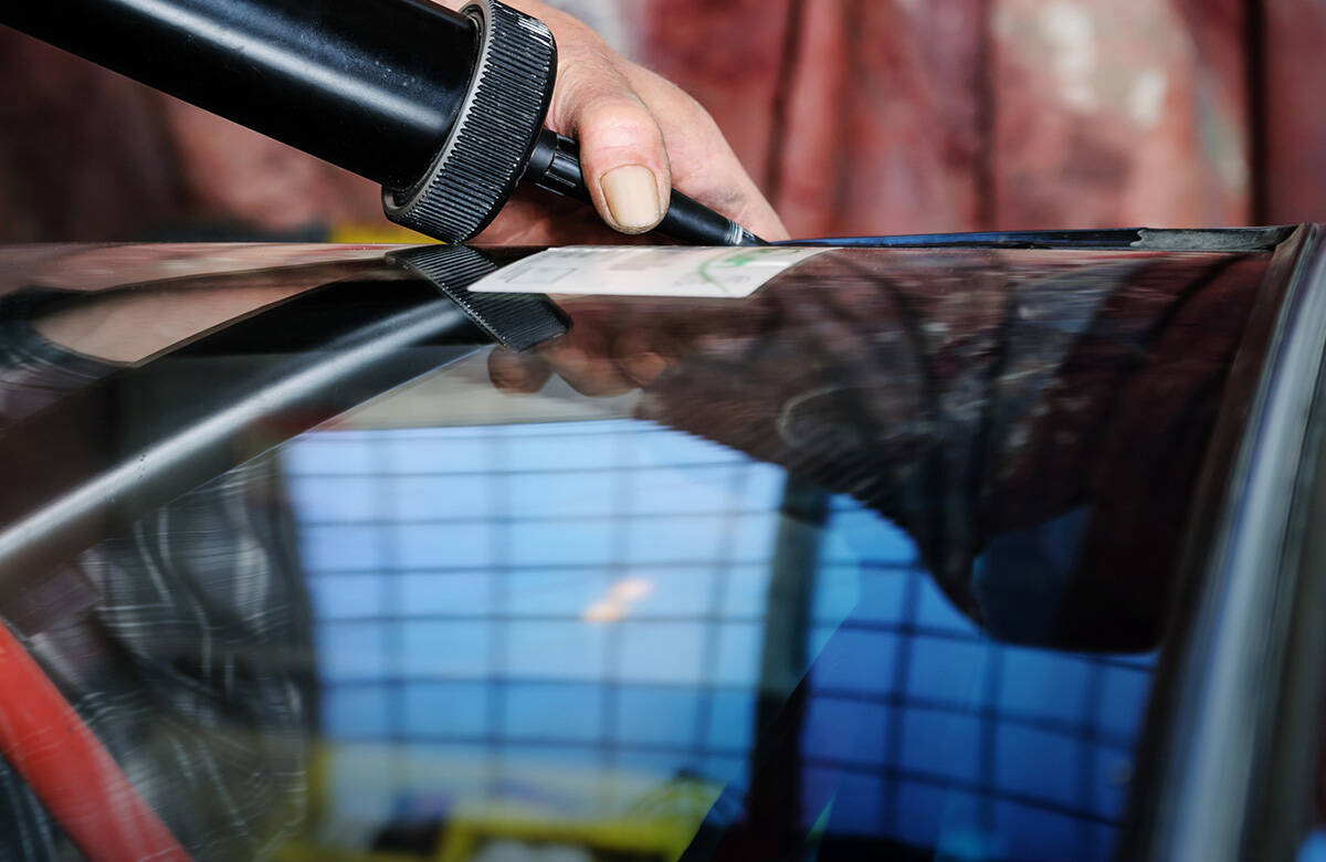 新しく取りつけるガラスに専用の接着剤を塗布します。